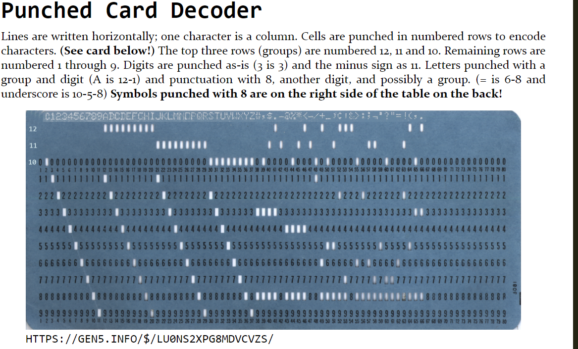 Tried a basic punch card decoder — too confusing. Found a better one at gen5.info which helped.