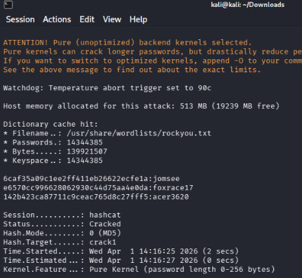 Recognized these as MD5 hashes. Used an online MD5 hash lookup tool (crackstation) to reverse them against the rockyou wordlist.