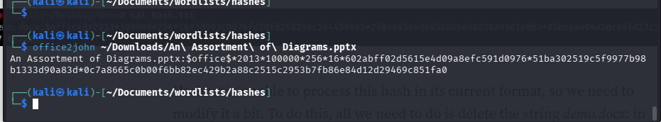 Looked up “PPTX cracker.” Found an article about extracting password hashes from Office files using office2john.