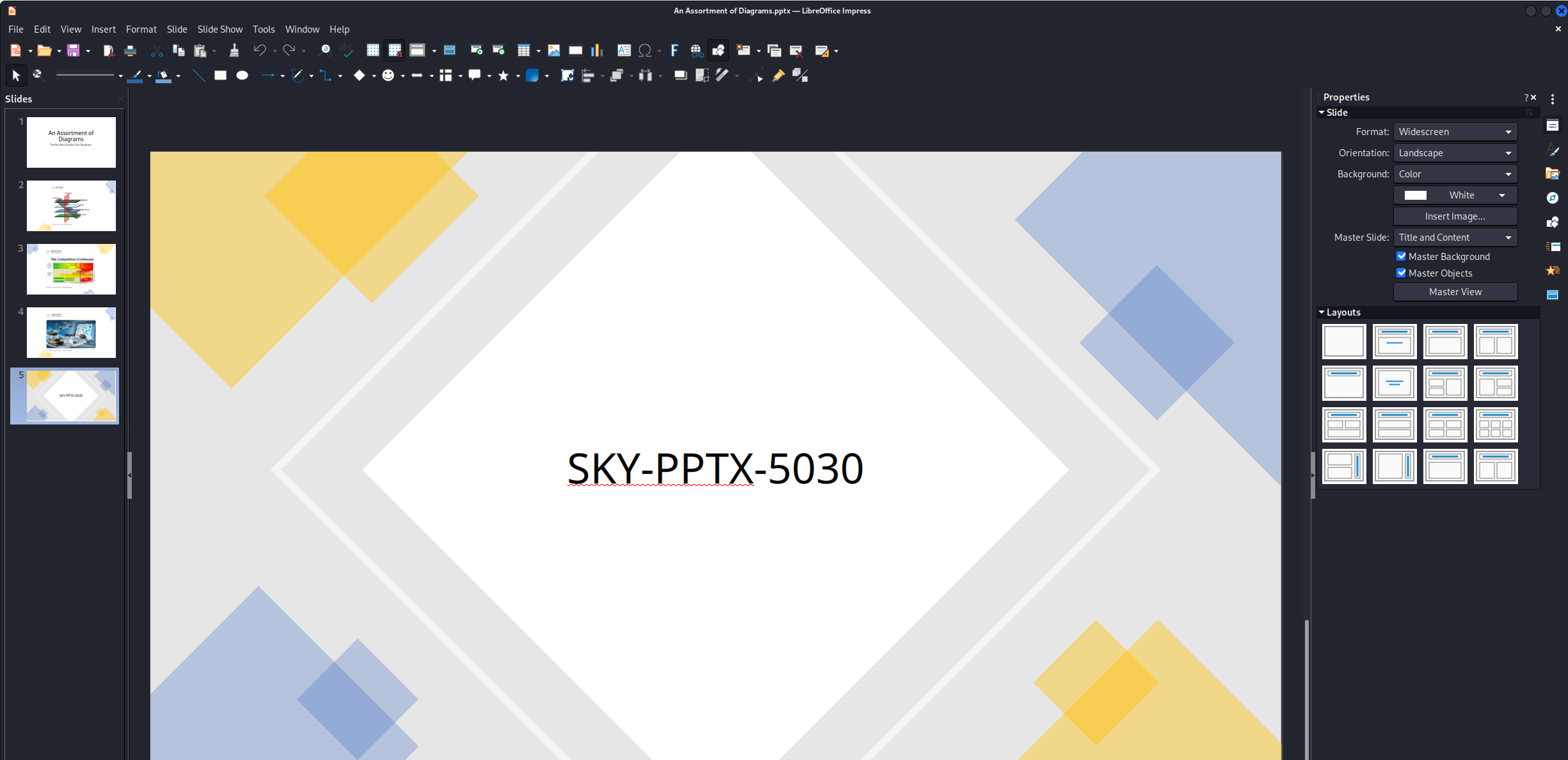 Opened the PPTX in LibreOffice with the password. The slide contained the flag: SKY-PPTX-5030.