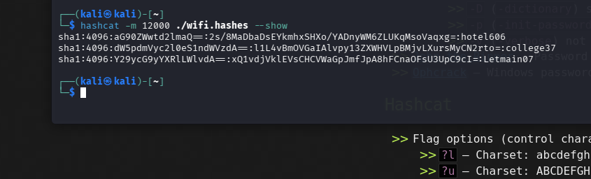 hashcat -m 12000 wifi.hashes /usr/share/wordlists/rockyou.txt