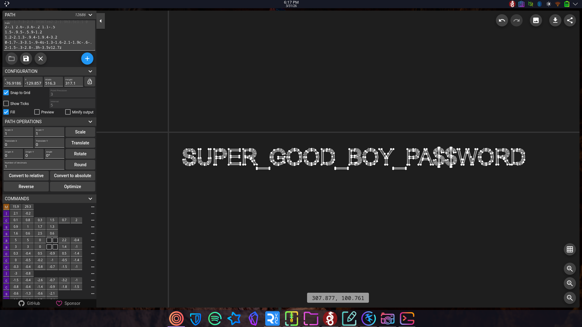 Loaded the SVG path data into an online SVG path visualizer, which drew out the password visually.