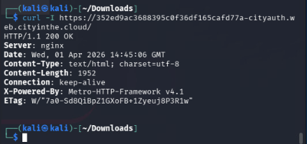 Q1 — Ran curl on the website. The response headers revealed Metro-HTTP-Framework v4.1.